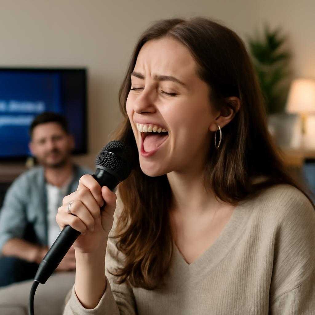 Для комнаты важны три вещи: читаемый экран, понятный звук и свободный проход. Телевизор или проектор ставят так, чтобы текст видели поющий, и сидящие сбоку. Колонки не упирают в стену, иначе бас начинает гудеть. Микрофон проверяют до прихода гостей: уровень громкости, задержку, заряд, запасной кабель. Если поют через приложение на телевизоре или приставке, плейлист собирают заранее. Поиск песен по ходу вечера сбивает темп сильнее, чем слабый вокал.