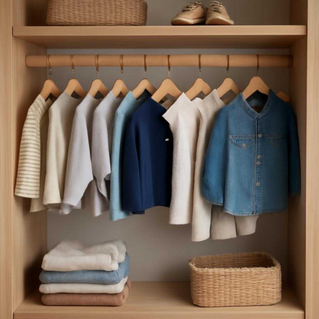 Полезная привычка — разбирать гардероб по сезону и по размеру. Когда в шкафу висят только актуальные вещи, легче видеть реальные потребности. Ребенок самм быстрее находит нужный комплект и учится одеваться аккуратнее. Лишнее из маленького размера лучше сразу убрать: так не возникает ощущения хаоса и не покупаются вещи-дубли.