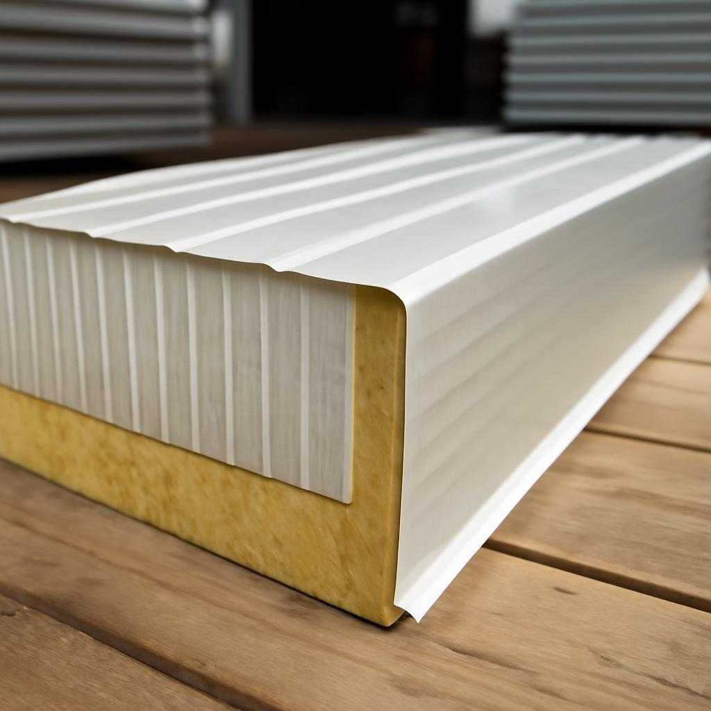 Для минеральной ваты контролируют плотность пакета и отсутствие пустот. Для пенополистирола смотрят на целостность сердечника и точноесть прилегания к облицовке. Для пенополиуретана проверяют равномерность заполнения, отсутствие раковин и стабильность структуры. На готовом изделии не допускаются вздутия, перекос профиля, замятие замков, расслоение и повреждение защитного покрытия.