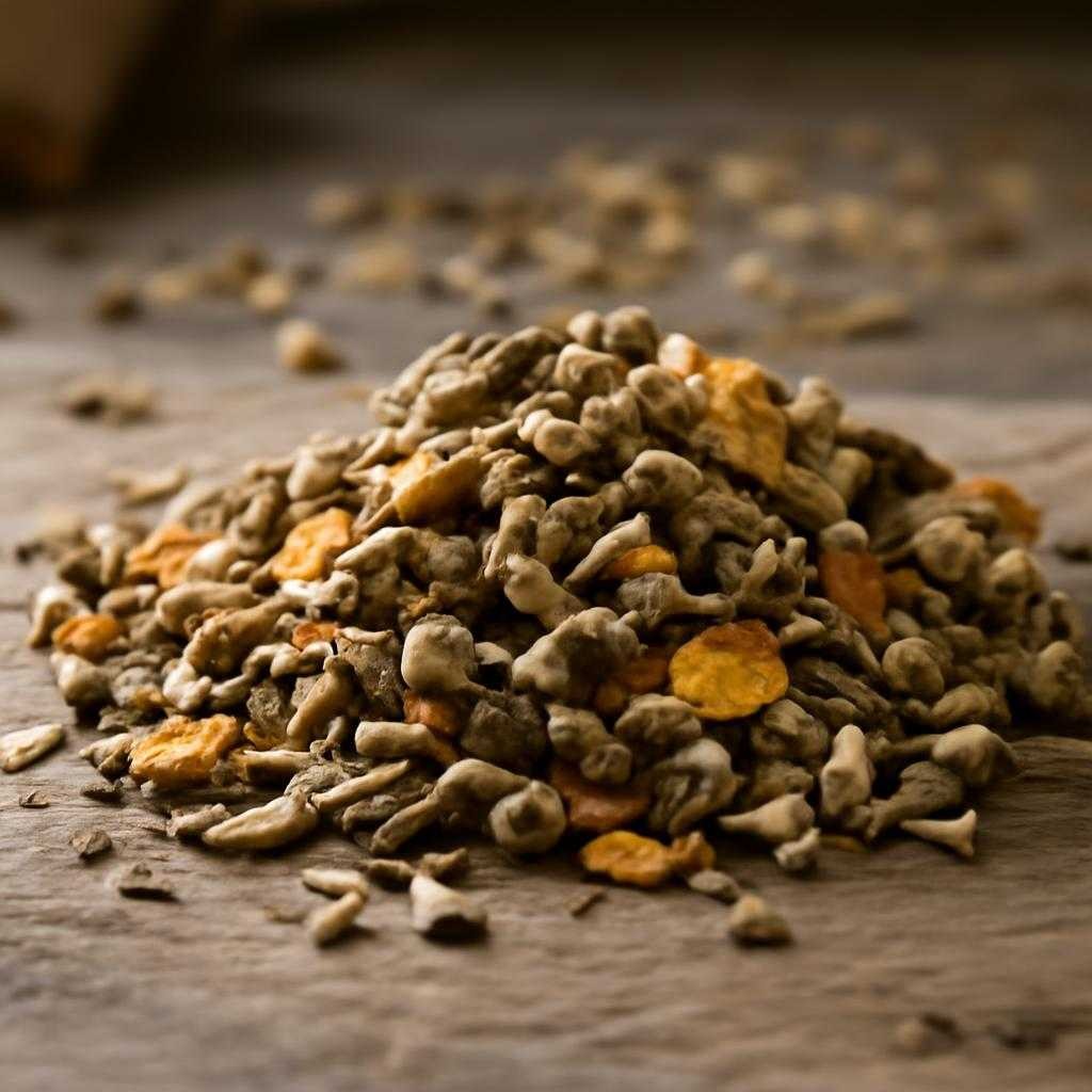 Список ингредиентов читают с начала. Первые позиции показывают основу корма. Хороший признак — конкретный источник белка: мясо птицы, индейка, ягнёнок, рыба. Размытые формулировки вроде «мясо и продукты переработки» дают мало информации о сырье. Если на первых местах зерновые, а животный белок уходит вниз списка, питательная ценность для хищника выглядит сомнительно.