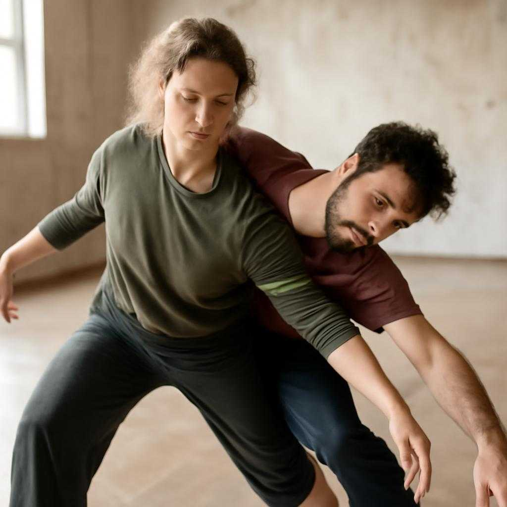 Контакт строится на распределённом весе партнёров. Каждый участник прислушивается к потоку веса, находит баланс, отпускает лишнее напряжение. Трение, вращение и скольжение формируют своего рода кинетическую каллиграфию. Я замечаю, как смена центра тяжести ведёт к феномену серендипности: неожиданные фигуры рождаются без приказа ума.