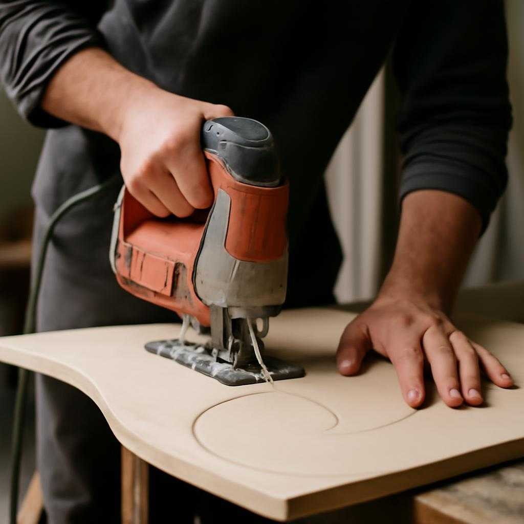 ЧПУ-фрезер с алмазной головкой создаёт прямоугольные пазы под декоративные вставки и сложные кромки под подсветку. Проход идёт в несколько подач, шаг три десятых миллиметра. Процесс сопровождает термин «перегрев кромки» — повышение температуры выше девятисот градусов, при котором биггеритовые включения вспучиваются. Для снижения риска стенд обдувается эмульсией на основе пропиленгликоля.
