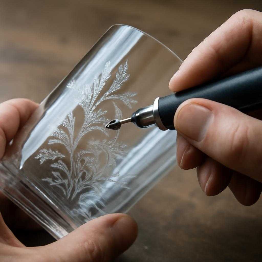 Линия в гравировке сравнима с партитурой для струнного квартета: толщина задаёт тембр, глубина ‒ громкость. Популярный метод «витреоскретч» использует пассировку стекла плавиковой кислотой перед наносом штриха, благодаря этому резец входит мягче, риск скола снижается. Санкретический приём «фрост-филл» сочетает штихель — борфрезу — и последующее заполнение борозд лаком на основе шафранового пигмента: луч, преломляясь в окрашенной канавке, рисует спектральную радугу. Репортёрская камера фиксирует, как каждая точка превращается в микро-дифракционную решётку.