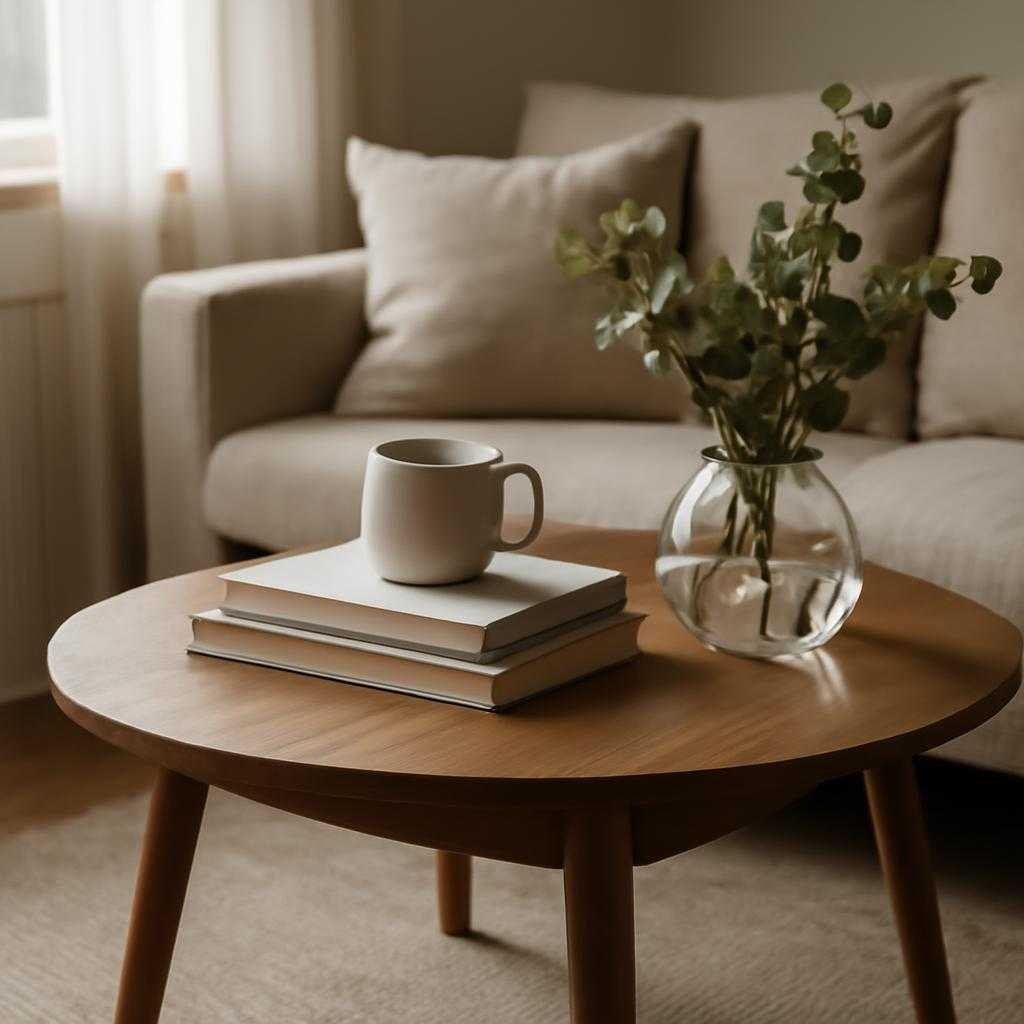 Высоту стола соотносят с высотой сиденья дивана. Удобный уровень — примерно вровень с подушкой сиденья или чуть ниже. Слишком низкая модель выглядит эффектно в просторной комнате, но в повседневном использовании заставляет тянуться вниз. Слишком высокая ломает пропорции зоны отдыха и мешает свободному обзору.