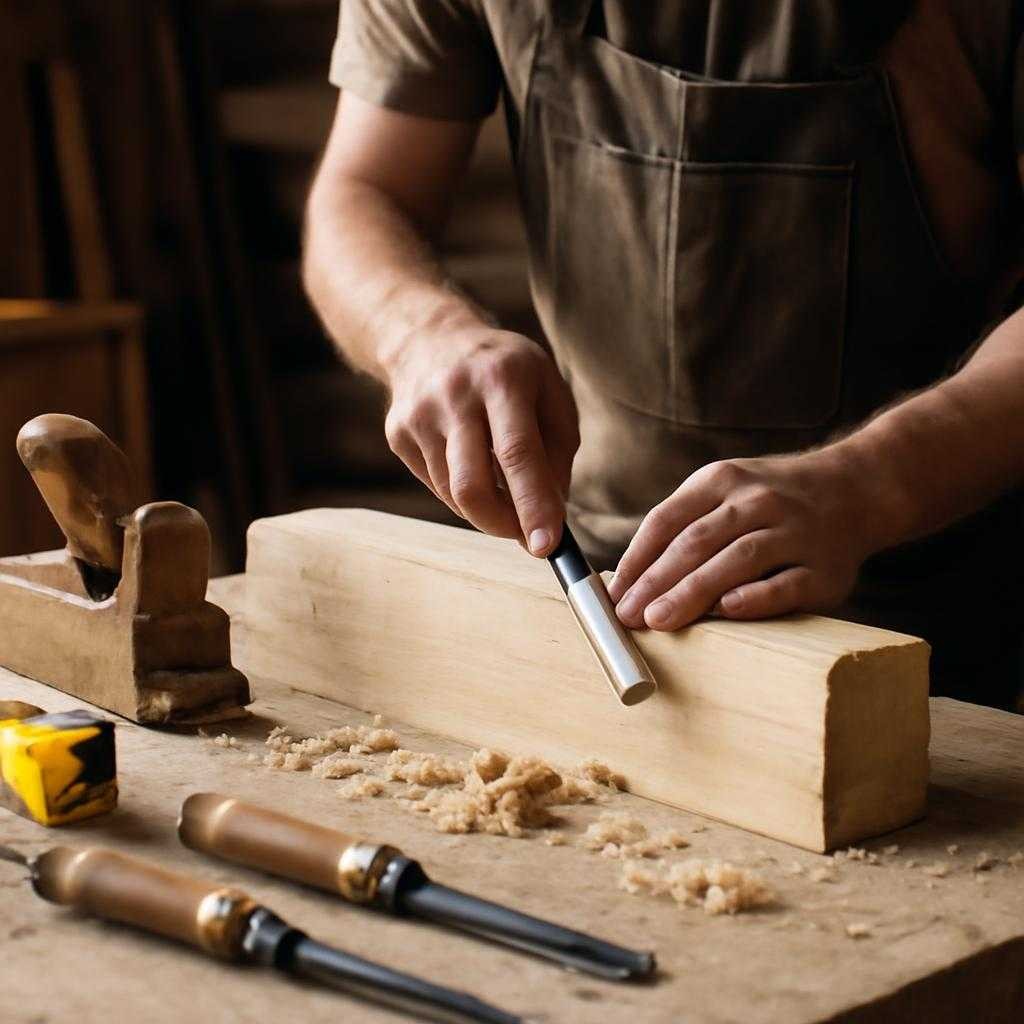 Для ручных соединений применяют стамеску с двусторонней заточкой «хирасаки». Угол 30° подходит для твёрдых пород. Зазор после выборки паза проверяют щупами шагом 0,02 мм, при посадке шипа слышен короткий хлопок — признак идеального сопряжения, который столяры называют «поцелуем».